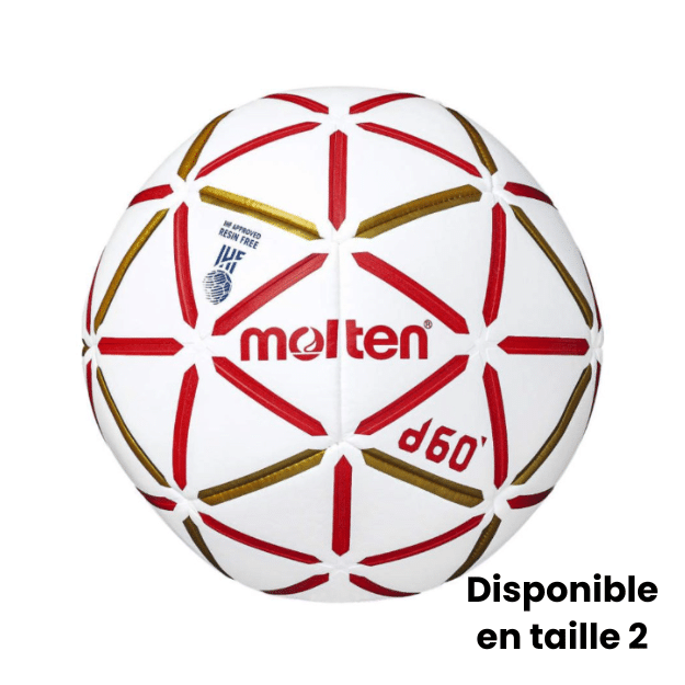 Le ballon Molten d60 est un ballon de handball indoor conçu pour offrir un excellent contrôle de balle, sans avoir recours à de la colle ou de la résine. Sa conception en 12 panneaux laminés, sa surface absorbante et son design soigné en font un ballon idéal pour l'entraînement comme pour la compétition en salle.