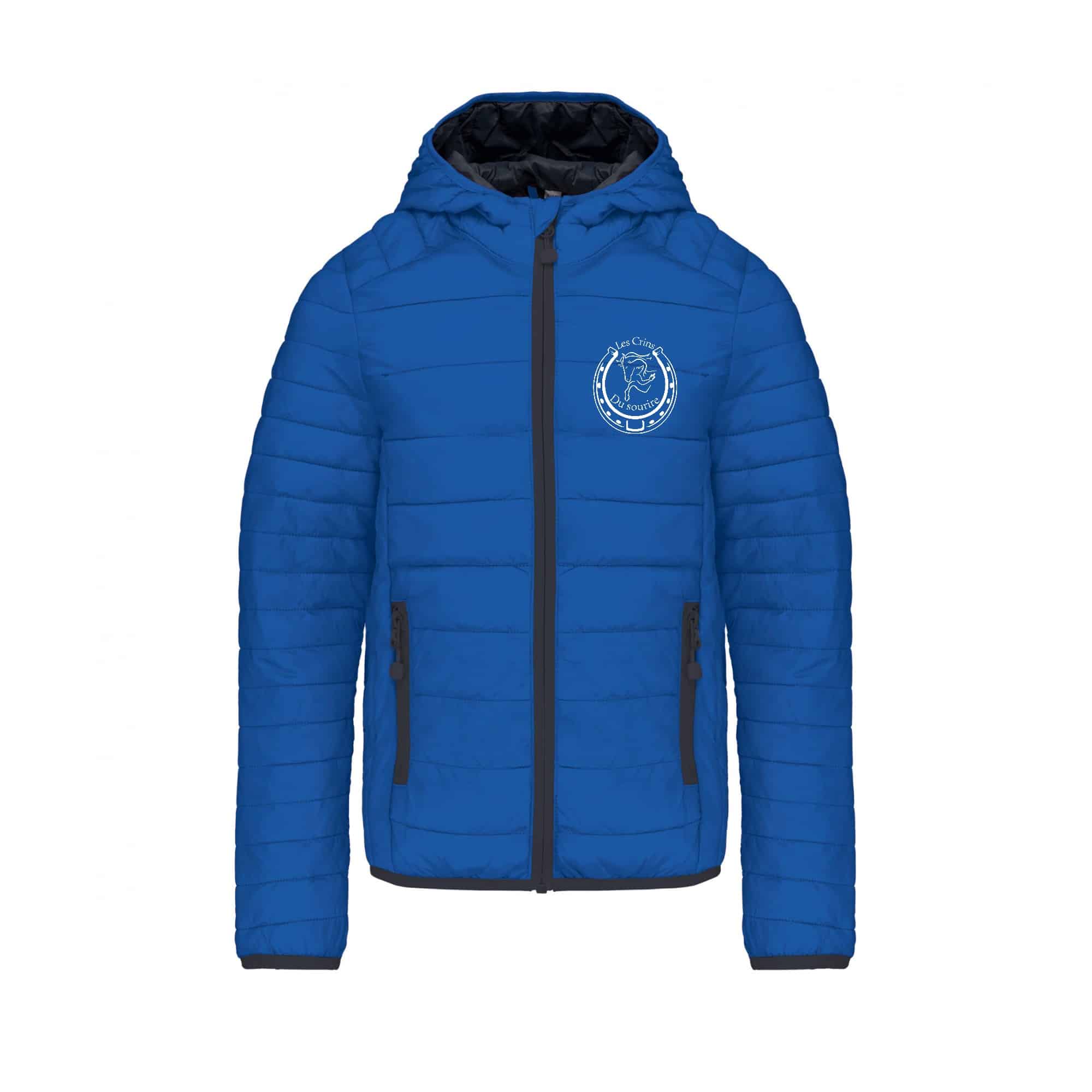 DOUDOUNE AVEC MANCHES ET CAPUCHE (enfant) – les crins du sourire – Bleu roi – K6112