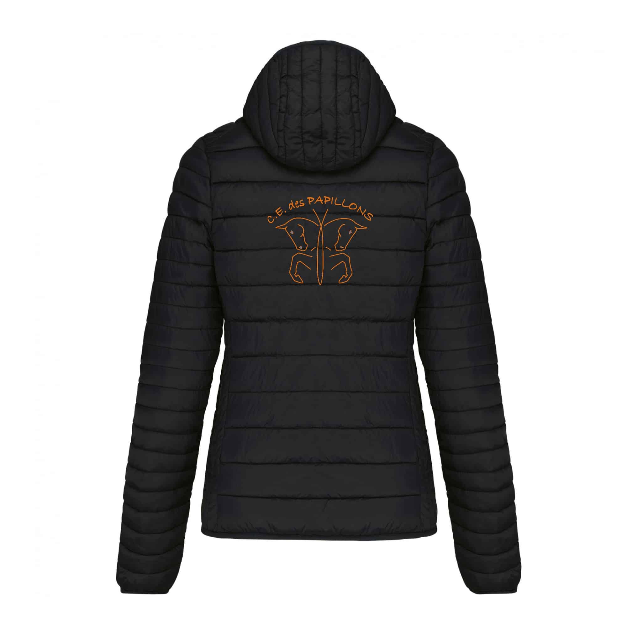 DOUDOUNE AVEC MANCHES ET CAPUCHE (femme) - Centre Equestre Des papillons - Noir - K6111