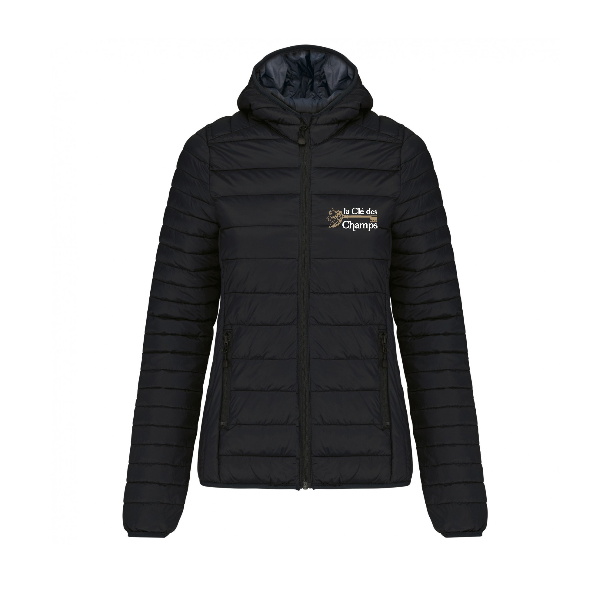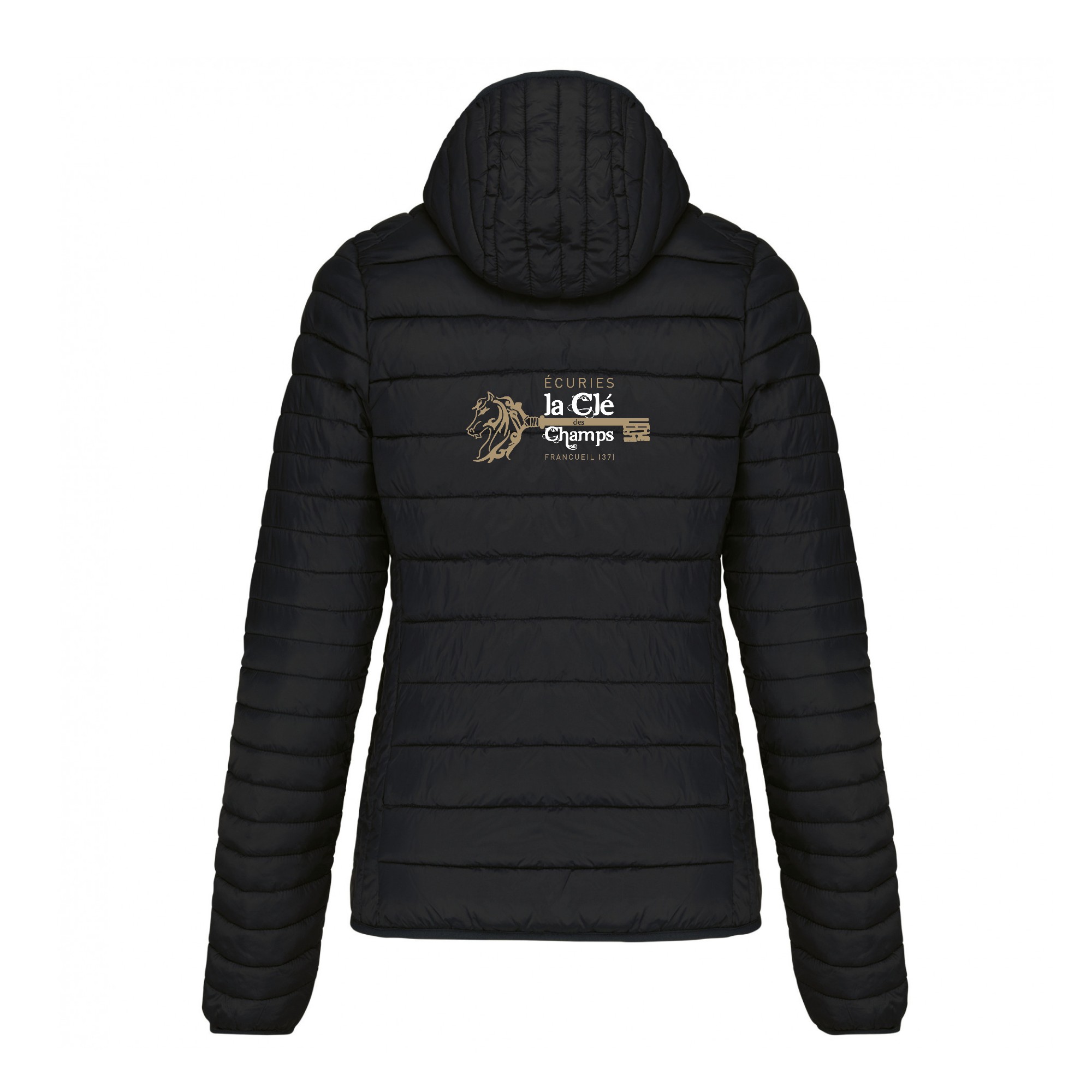 DOUDOUNE AVEC MANCHES ET CAPUCHE (femme) – les amis des écuries la clé des champs – Noir – K6111