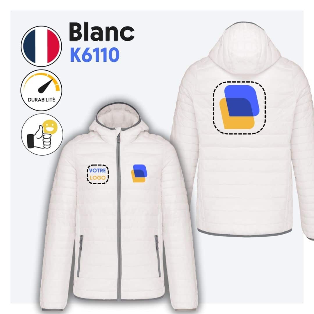 Notre doudoune homme avec manches et capuche personnalisable est l’alliée idéale pour les associations, entreprises et collectivités à la recherche d’une solution de vêtement pratique, chaude et légère. Cette doudoune est non seulement élégante, mais elle offre également une personnalisation unique grâce à la broderie, permettant de mettre en avant le logo, le nom ou le message de votre choix.