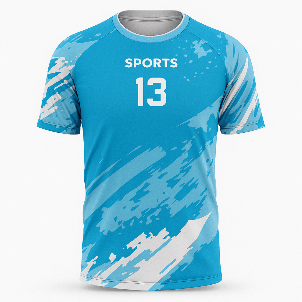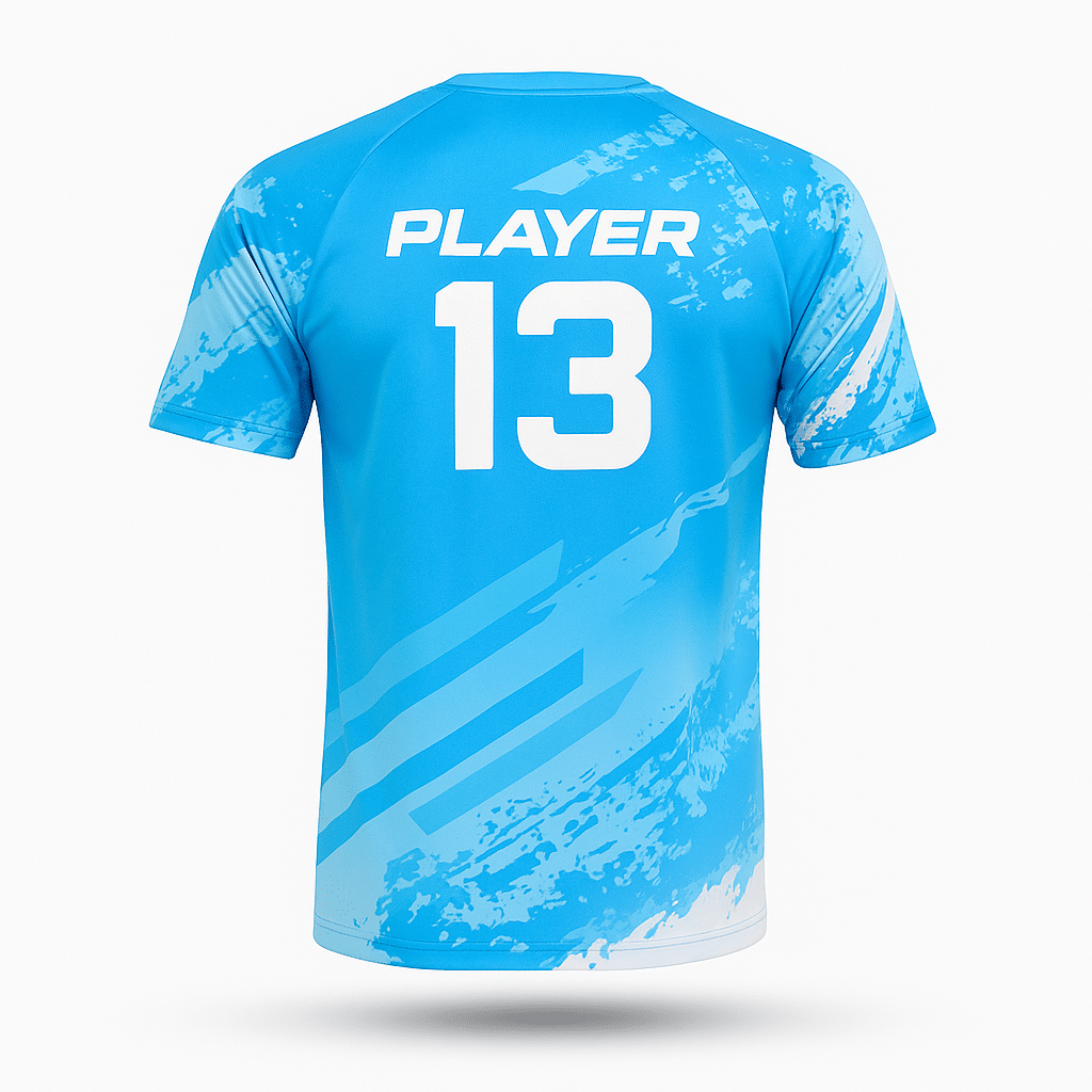 La coupe raglan permet une plus grande liberté au niveau des épaules, ce qui facilite les mouvements des bras et rend ce modèle idéal pour les sports collectifs ou les activités dynamiques. Le design moderne, avec un graphisme imprimé dynamique sur le torse et les manches, est entièrement personnalisable (numéros, noms, logos).