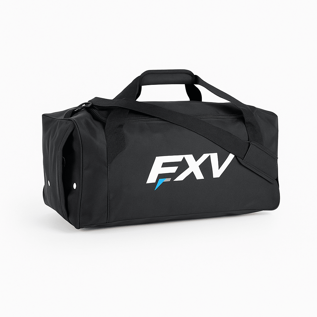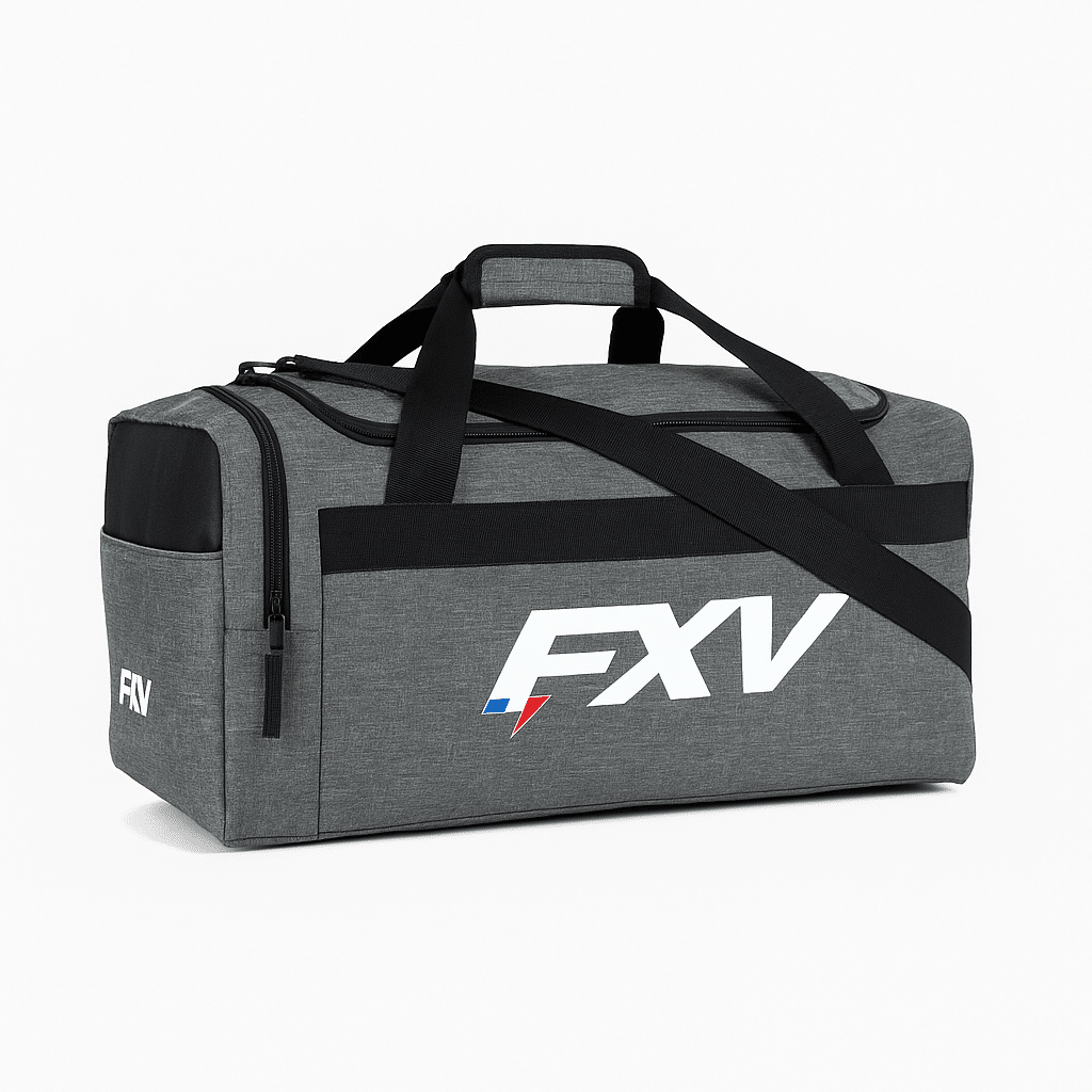 Sac de sport FXV 41L ou 61L avec poches latérales aérées, bandoulière ajustable et ouverture en U. Idéal pour les entraînements et déplacements sportifs.