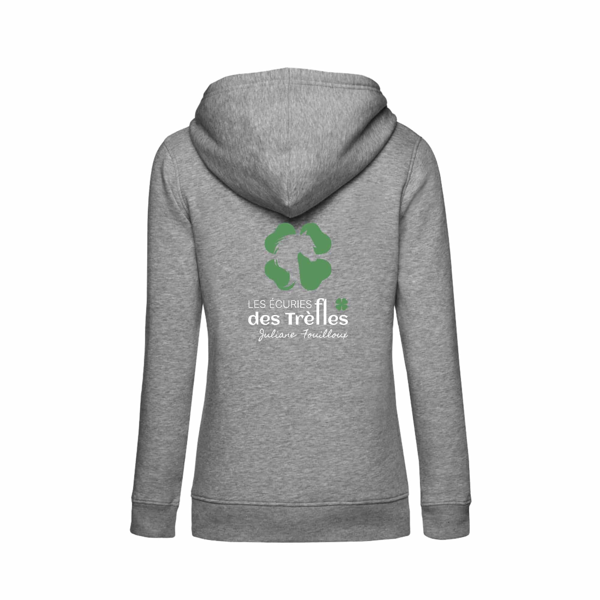 SWEAT A CAPUCHE (femme) – Les Ecuries des Trèfles – Gris chiné – BCW34B