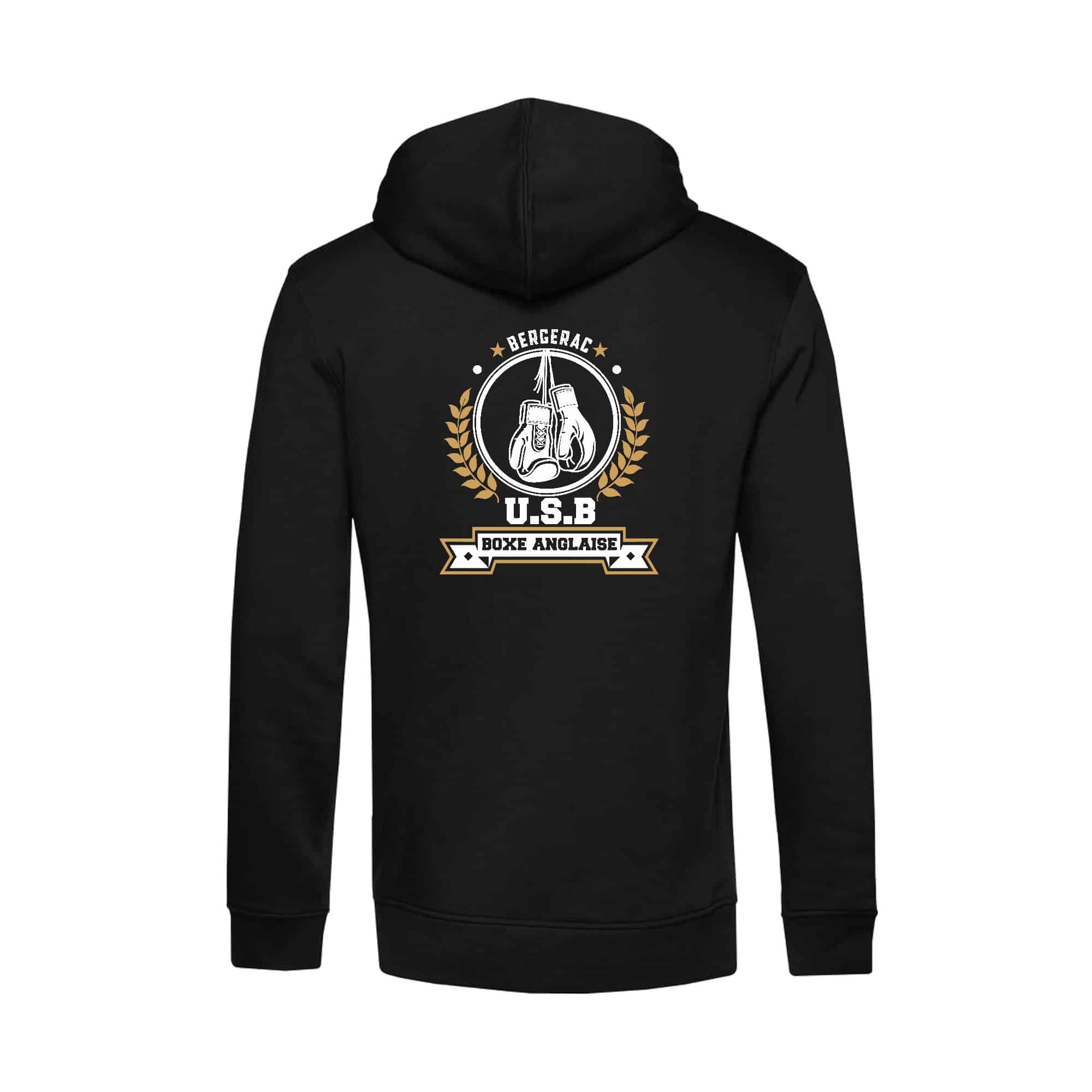 SWEAT A CAPUCHE (homme) – USB BOXE ANGLAISE – Noir – BCU33B