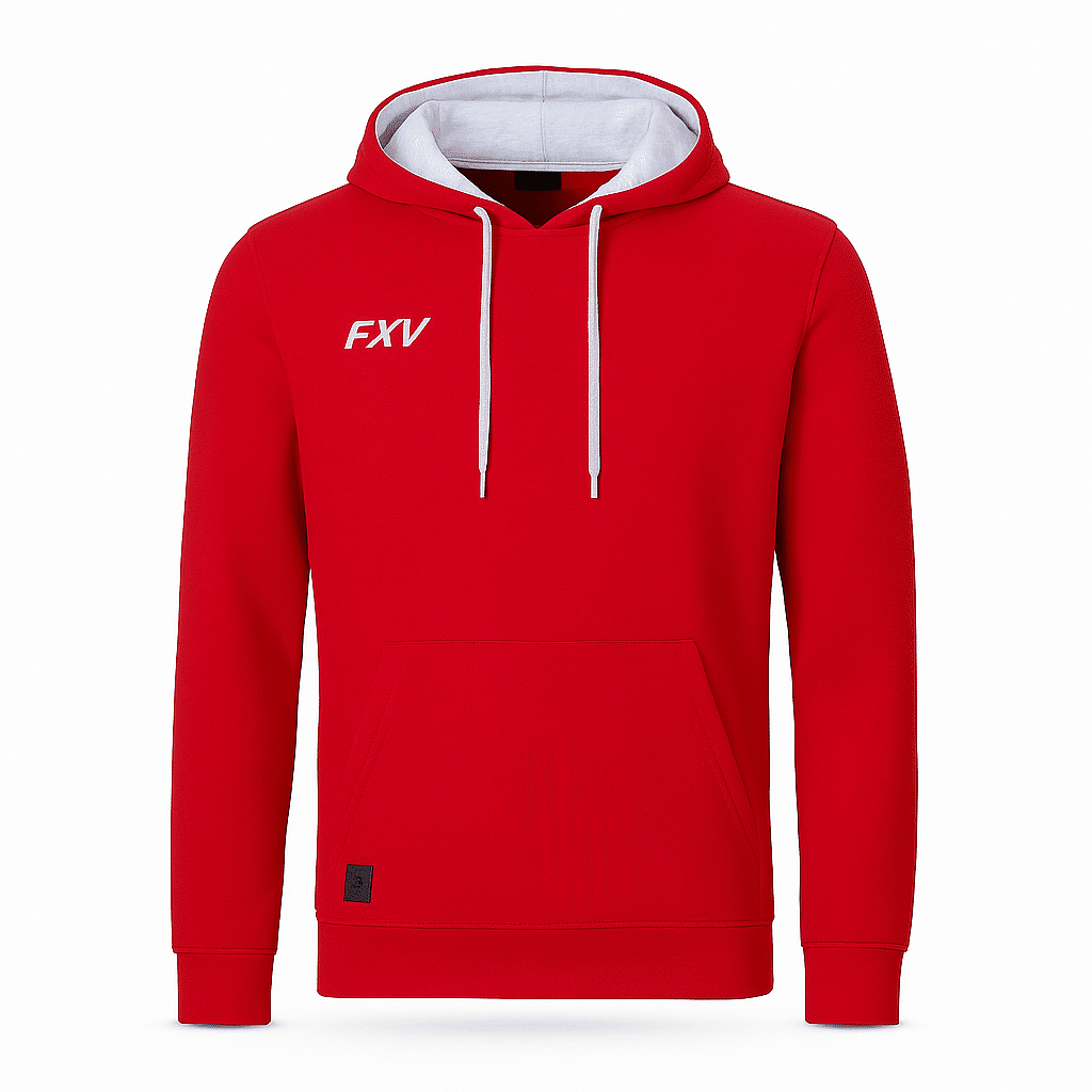 Un logo “FXV” brodé est placé sur la poitrine, renforçant l’identité de la marque et la durabilité du visuel. Ce sweat est disponible dans les tailles enfant allant du 116 au 164, pour convenir aux enfants de 6 à 14 ans environ. Il est proposé en trois coloris : noir, rouge et marine.