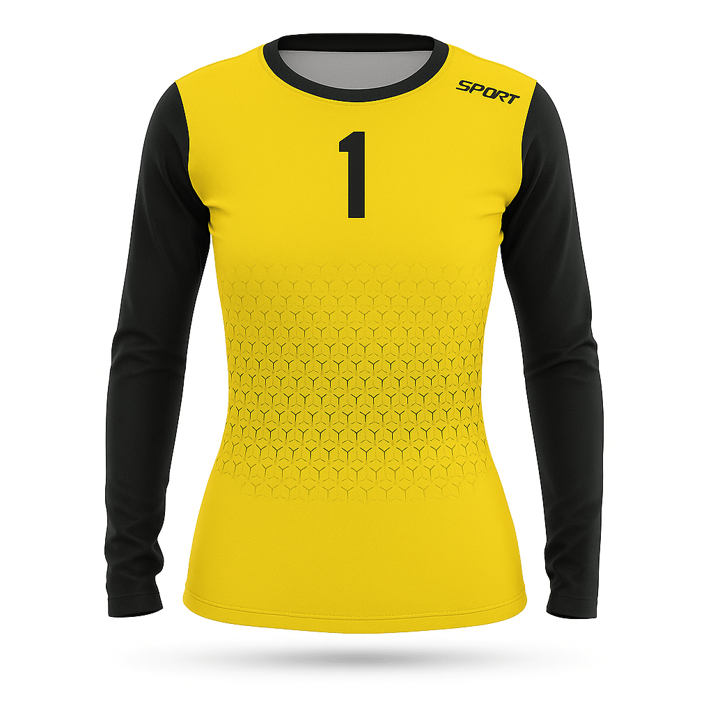 Ce modèle présente une coupe cintrée et ergonomique, spécialement pensée pour la morphologie féminine. Les manches longues et le col rond classique offrent un bon niveau de protection thermique. Le visuel dynamique en contraste (jaune et noir) renforce le style sportif du produit.