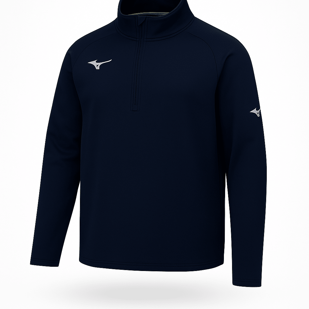 Top manches longues junior en 100 % polyester (200 g/m²) avec demi-zip. Disponible en noir et marine, tailles 116 à 164.