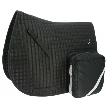 Piqué en polyester avec un matelassage polyfill de 300 g/m² et une mousse de 6 mm, ce tapis offre un amorti optimal pour le dos du cheval lors de longues heures de randonnée. Il est équipé de sacoches imperméables à zip étanche, de bandes réfléchissantes pour la visibilité et d’anneaux pour fixer accessoires ou imperméable.